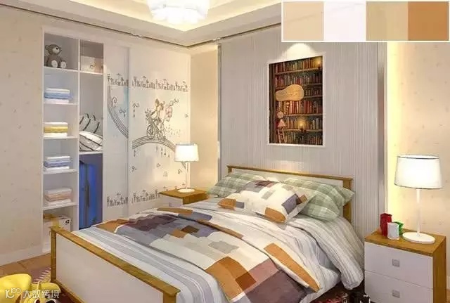 以各种浅色系颜色为主色调进行组合设计,打造出一个宁静书香门第卧室,棕、黄、白、灰等色彩混合起来,原来也能这么耐看!