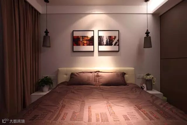 这间卧室整体上以深咖色为主,加上简单的线条的家居而显得简洁宁静。