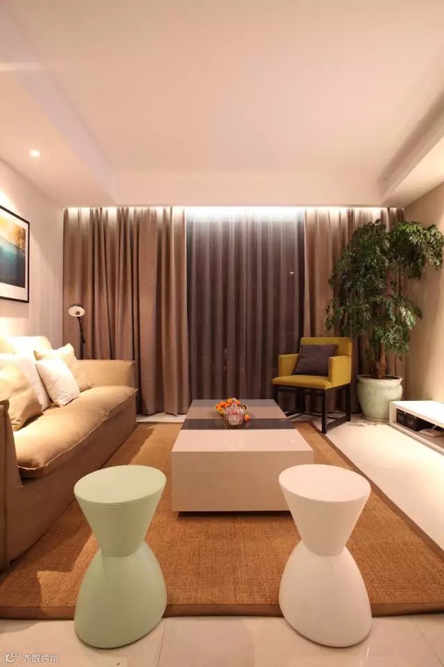 以黑白灰为主色调加上简单线条装饰起来的客厅简洁而舒适,加上客厅的家居有的都采用特别的几何感的设计而又充满着时尚感。