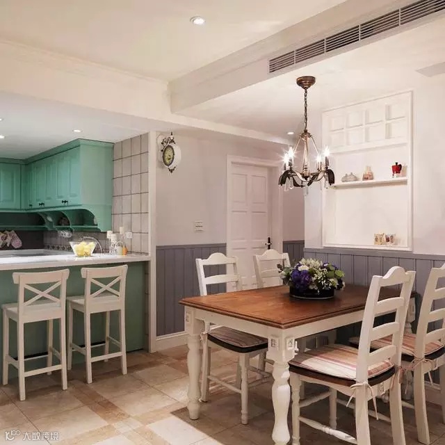 ▲地面铺设釉面抛光瓷砖,看起来时尚大方。开放式的厨房,欧式风格的餐桌椅以及吧台设计,整个餐厅美观又实用。