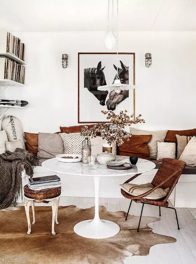 ▲ 书架、壁炉、电视,窗外景色等都可以作为客厅焦点,你可以将沙发、座椅、垫脚软凳的朝向都转向焦点物件,形成一个弧形的对话空间。