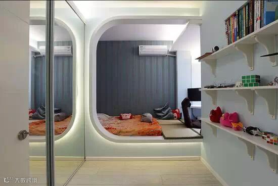 ▲ 超级现代的儿童房设计吧,最喜欢旁边的镜子啦,让屋子显更大