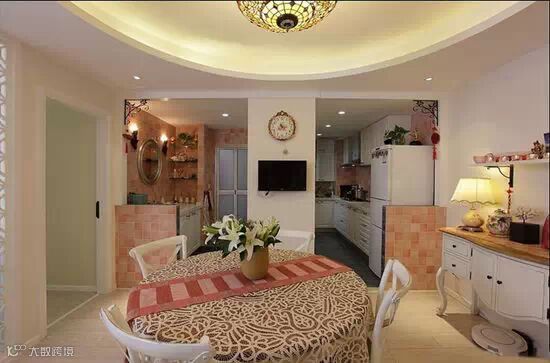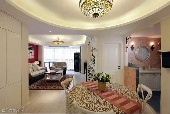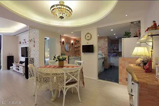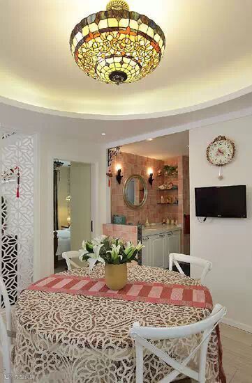 ▲餐厅的圆形吊灯设计让这块空间非常温馨又有点欧式情调,且和客厅的空间独立开来