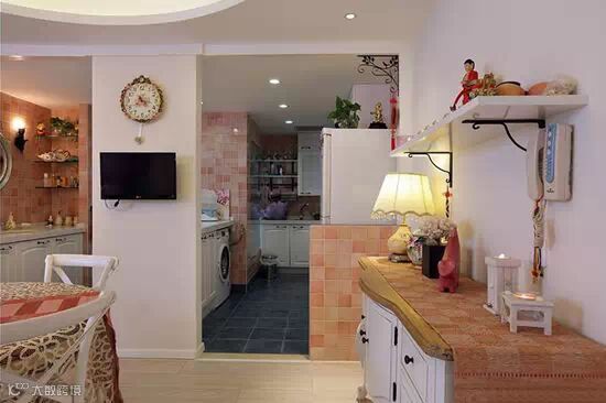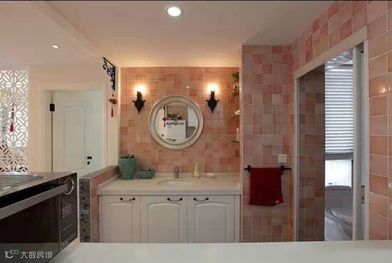 ▲卫生间的设计很田园很温馨的哦,粉色的墙砖非常有感觉