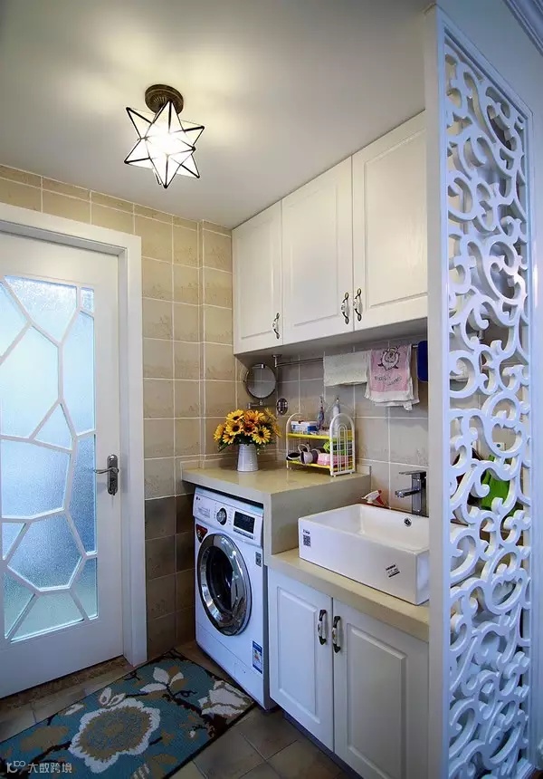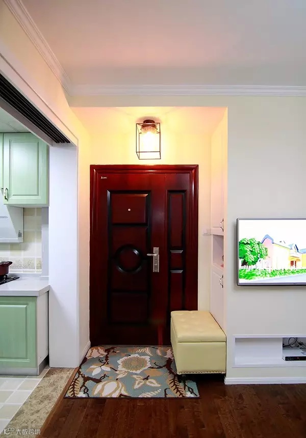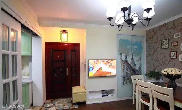 ▲ 左边是洗手间干区,右边是厨房,厨房移门采用吊轨移门,可以方便的打扫地面卫生