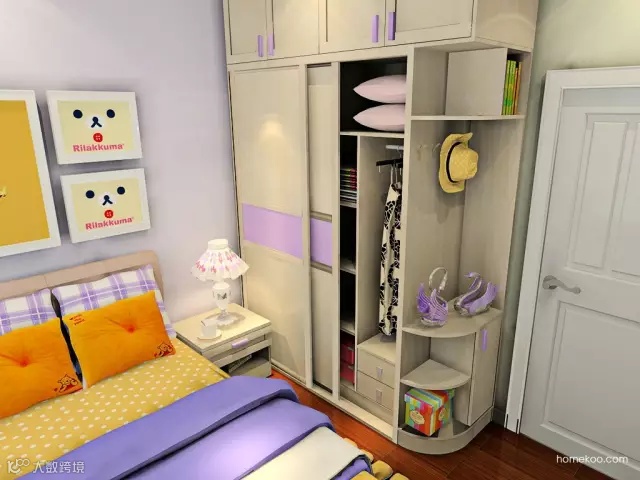 03 提高床的高度,床下设计成衣柜,大大提高房间的储物功能。
