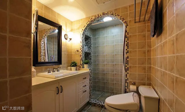 通过一个小空间的分隔,不仅让卫生间能有个独立的淋浴区,同时便于打理,也能起到很好干湿分离的作用。另外有些不够大的卫生间可以使用浴帘的方式分隔淋浴区。