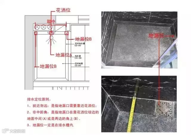 排水问题除了在前面讲到的排水定位要考虑外,另外更主要的是通过设计上的细节处理,这样能更好解决在冲凉时引导水流及时排掉。