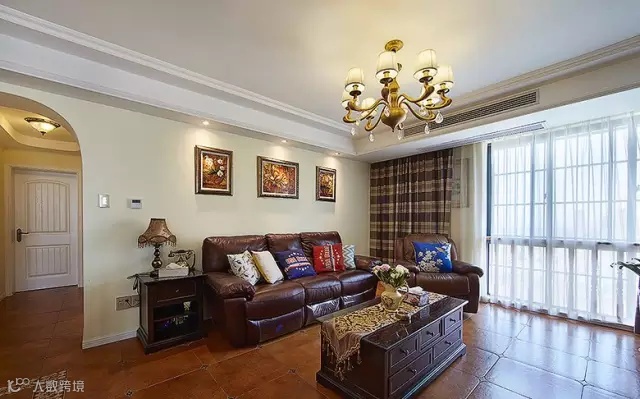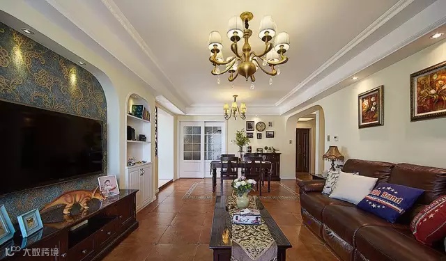 ▲ 客厅餐厅一体,通铺仿古砖
