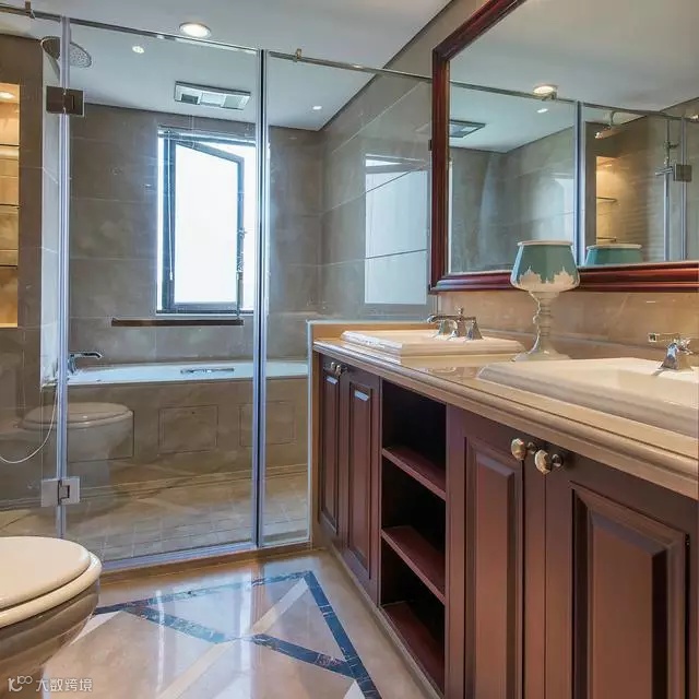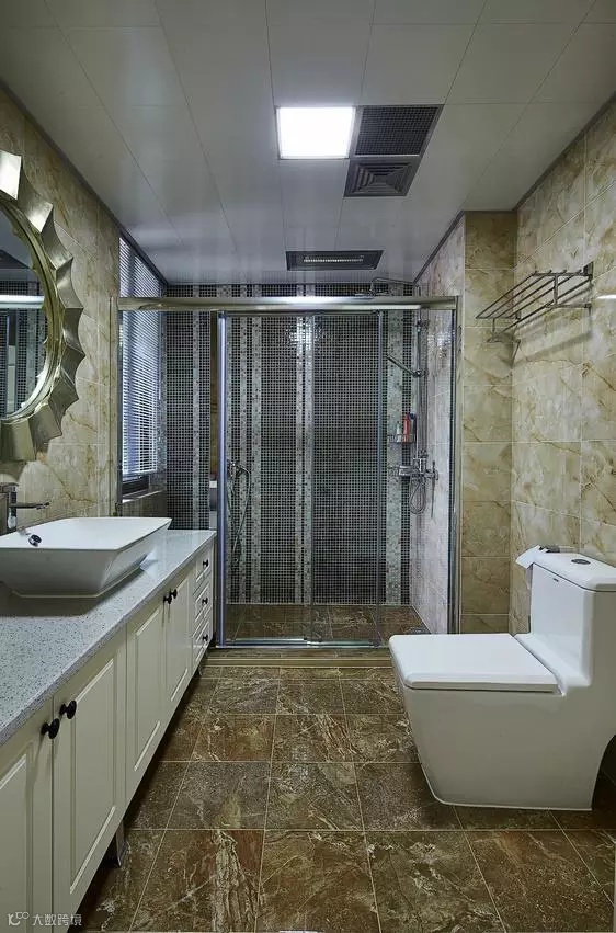 2、完全分离是针对于大户型较宽敞的卫生间,采用隔断的方式将卫生间完全分隔为干湿两部分。一部分是洗漱区一部分是淋浴区。 在湿区内一般设置有浴缸,它与座便处不再进行区域分割。这种方式分割彻底,湿区的水汽完全不会影响到干区。要注意应该采用玻璃门等防锈、防腐材料,以应对湿区内的水汽侵蚀。