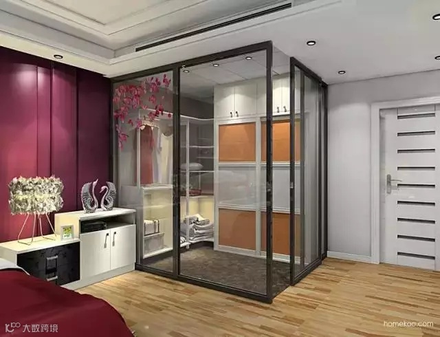 玻璃衣帽间,增加了夫妻间的情调,大大提升了生活的品质。