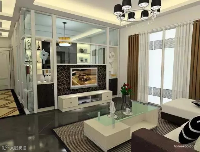 玻璃隔断和简约风格的黑白家具搭配,让空间更通透明亮,完全不感觉客厅变小。