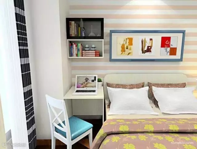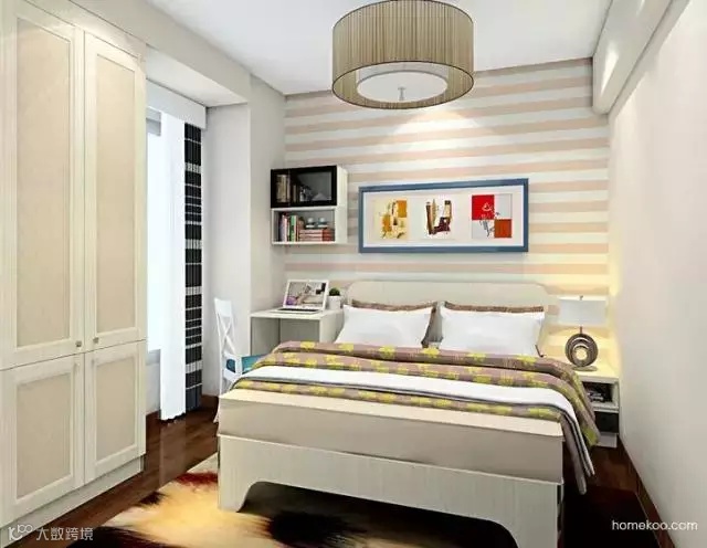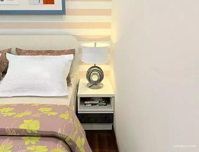 床头柜和床并排布置,充分利用小空间。