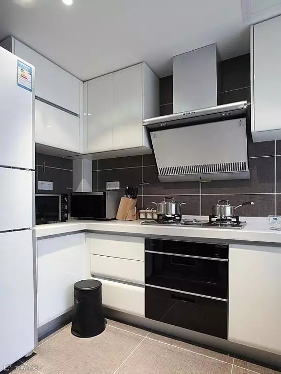 ▲简约小清新厨房,黑白色调,简约时尚,永不过气的装修色彩。