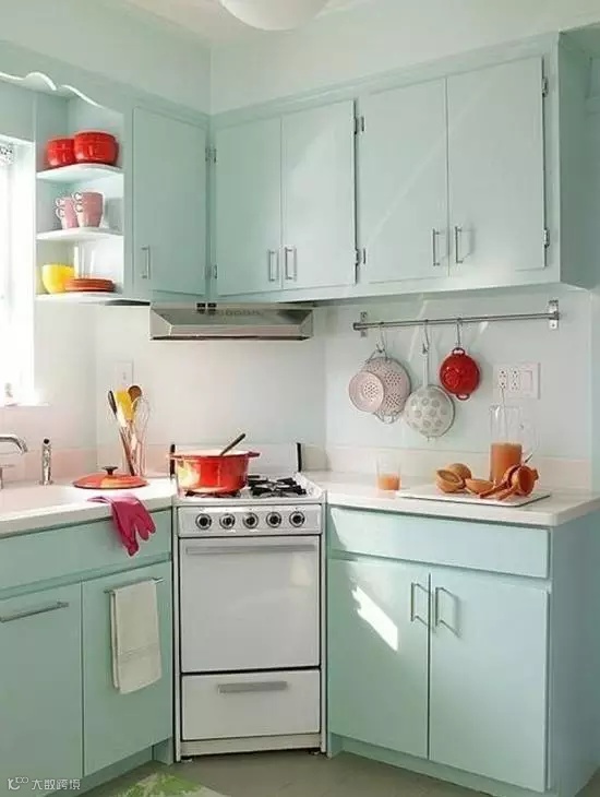 ▲清新的淡绿色为主调的厨房,这还是厨房吗?简直让我睡在这里都可以了。