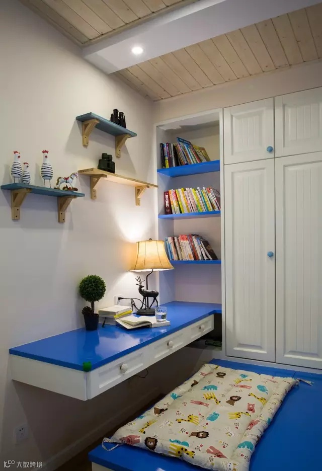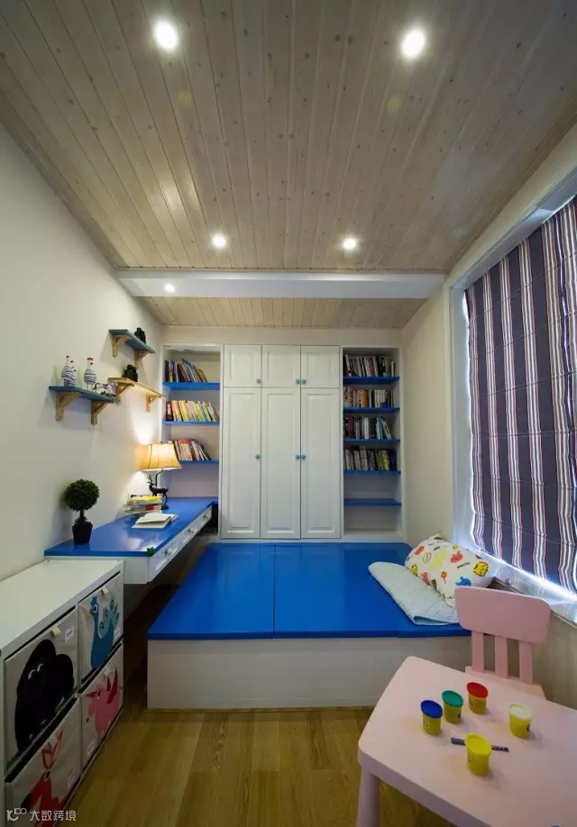 ▲ 次卧设计成多功能榻榻米,蓝白地中海色调