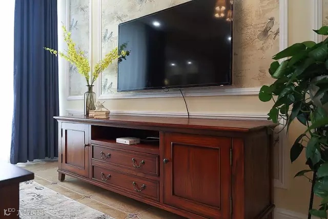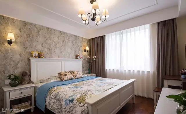 ▲ 藏青色的窗帘盒白色的纱配上美式家具很和谐