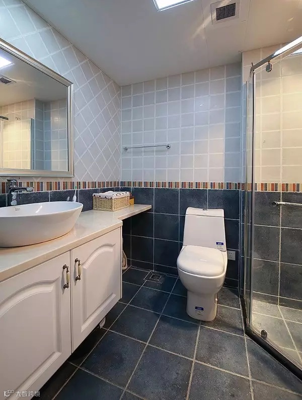 ▲ 上浅下深的卫生间色调