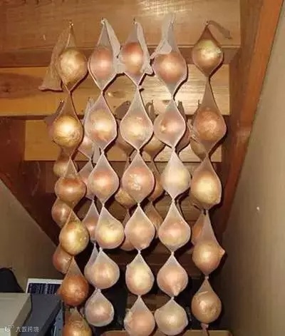 11、把洋葱放进不用的丝袜里面,然后挂起来,放半年也没事哦!
