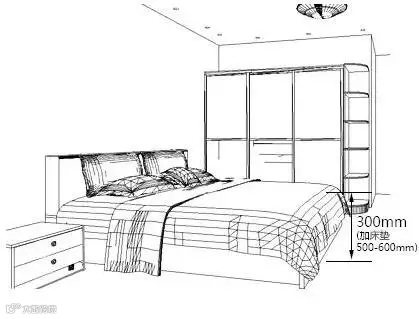 通常略高于就寝者膝盖为宜,亚洲人床高一般在300mm左右,加上床垫大概500-600mm左右。