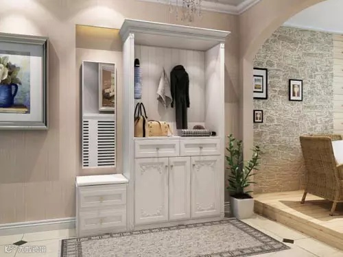 当小户型客厅空间较窄,玄关柜可以和书架设为一体,下面部分是鞋柜上面部分可以放书或者其他物品,既美观又彰显主人人文气质。