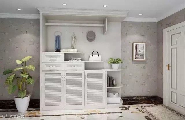 玄关是家的第一道风景线,在玄关柜中设计一定程度的开放式空间来陈列盆景和工艺品,可以给空间营造更多的艺术氛围。