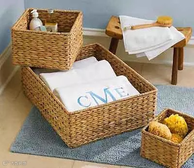 卫浴空间中收纳篮越来越时尚,在卫浴中放上几只藤制收纳篮,就会显得更加时尚又闲适。收纳篮可以随处移动,又可以变换组合,放上几个,把卫浴空间平常使用的东西分类收纳。