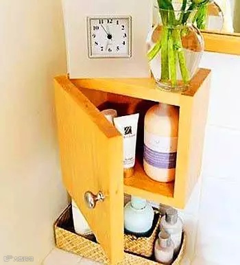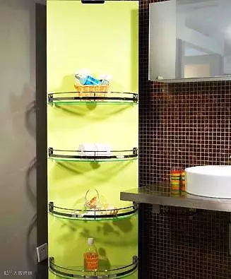 卫浴空间不大,所以收纳法则的不要浪费任何一寸空间的口号在这里是很受用的。墙角因为转角之处狭小,不容易被安排利用,用上小巧的边角卫浴柜,轻松利用局部空间进行收纳。