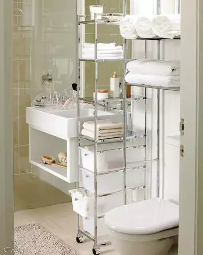 许多悬挂式面盆,下面有很多空间,好增容就要好好利用此处,或者直接购买落地式面盆,下面带有个大大的收纳箱体。面盆的旁边,有时候在卫浴空间布局中会出现不大不小的空间,正好放一个合适的立体收纳柜。
