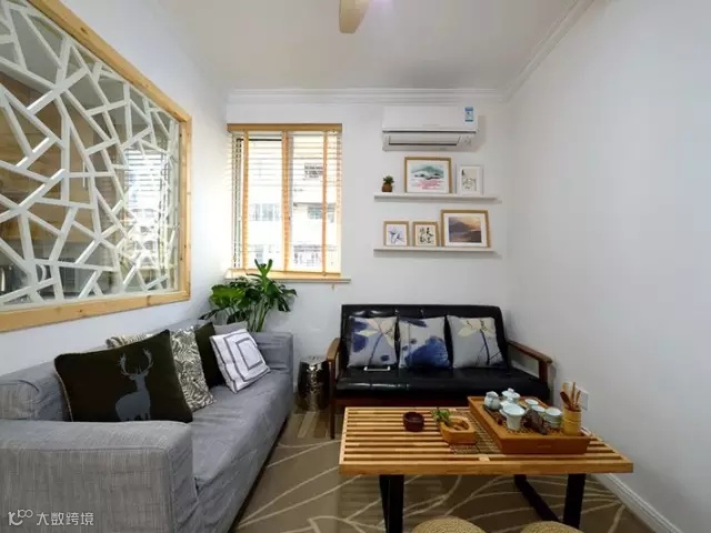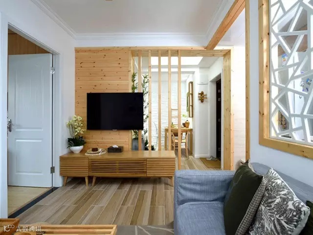 ▲ 电视墙做成栅栏造型,保持了视觉通透和采光