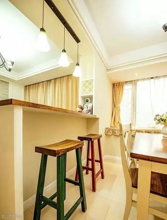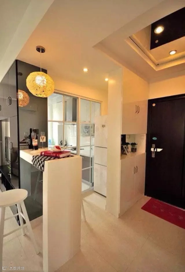 ▲这个吧台的设计就更妙了,利用玄关与厨房之间的小小面积不仅做了隔断还做了个小吧台,值得借鉴!