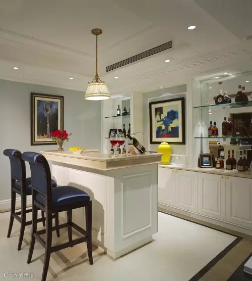 ▲吧台设置在酒柜旁也是再贴切不过了,邀三两好友来这坐坐,也是非常浪漫的事。