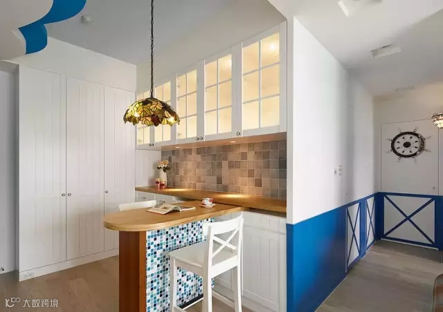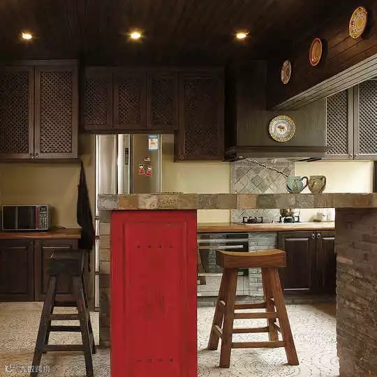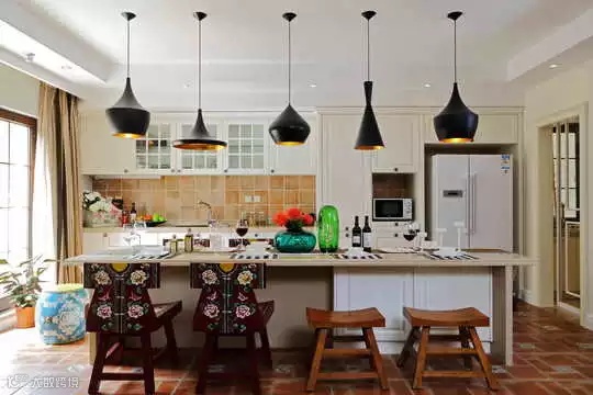 ▲如果你的厨房还允许的话,可以不顺着墙角来设计吧台,可以放在厨房的中间位置,边做菜还可以跟朋友边唠嗑。