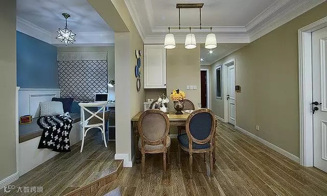 ▲餐厅旁边是个小书房,用台阶进行了功能区分,虽小了点 休闲工作的地方也算有了