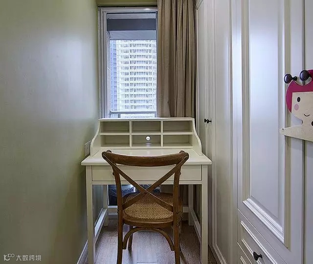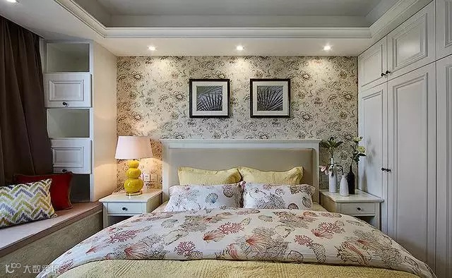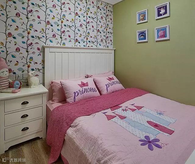 ▲壁纸和一些小装饰都带有田园风格自然清新味十足,定制的衣柜跟整个卧室浑然一体