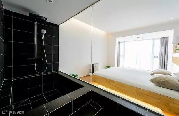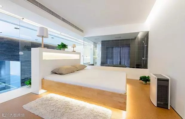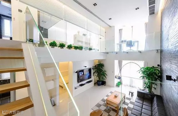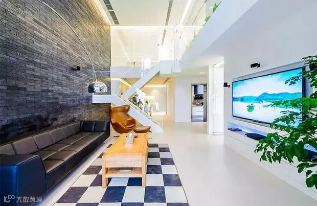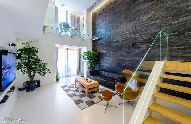 客厅一侧流光溢影,一侧沉默私密。一茶,一书,一知己,两人一同体会喧嚣城市中属于家的宁静。“发光的楼梯”——钢化玻璃下预埋灯带,让灯光透过玻璃,柔和而兼具科技感。当灯带开启的一剎那,整个房间都开始熠熠生辉。