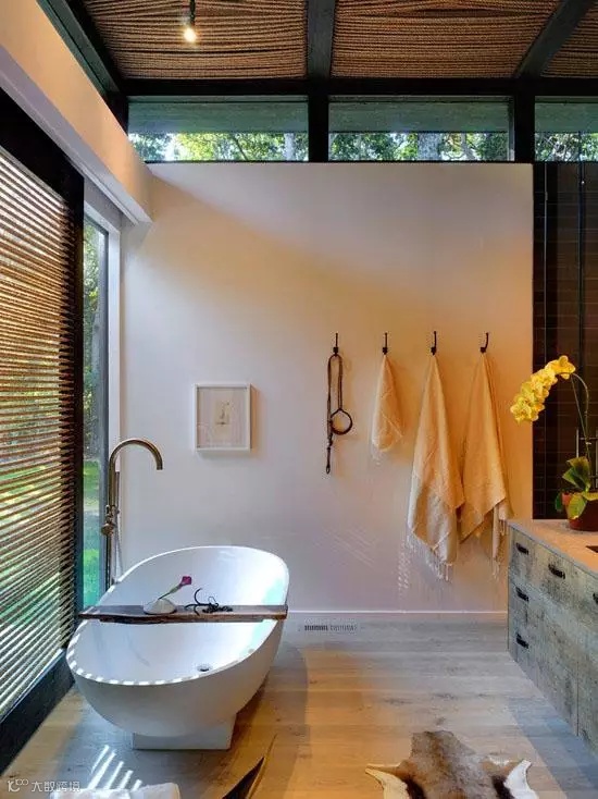 ▲仿佛待在热带雨林一样的风格设计,连沐浴都有了禅意。放好温水,撒下玫瑰花瓣,世间美好莫过于放松泡个澡。