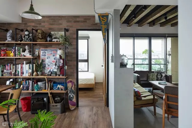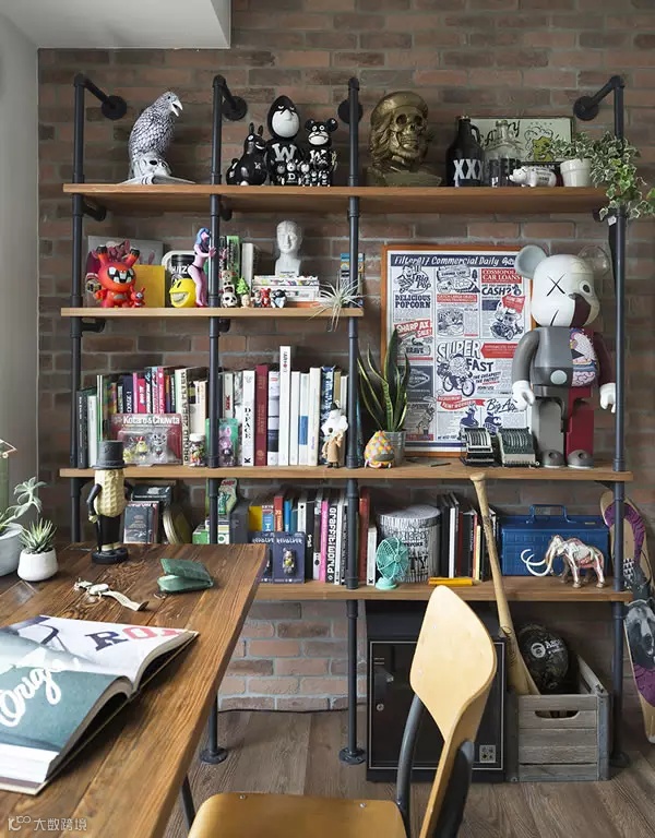 ▲ 一面文化石墙上制作的水管置物架是工业风常用的