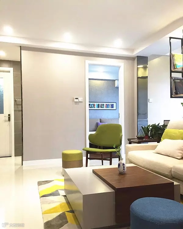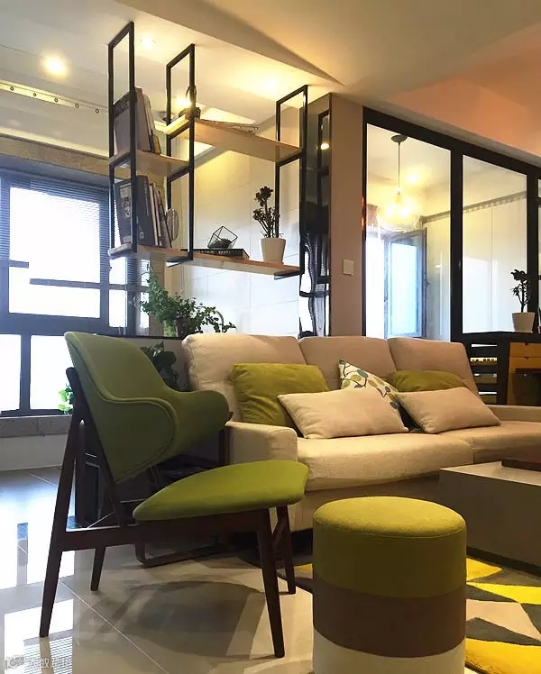▲ 地毯、单人椅、抱枕、凳子等装饰都选了带有绿色元素的