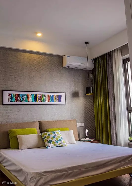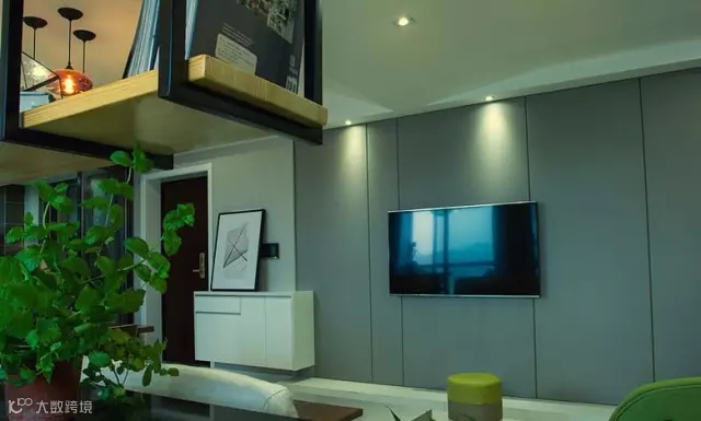 ▲ 黑白灰为主色调的简约风,融入了一点绿色的软装,让整个空间多了几分活力