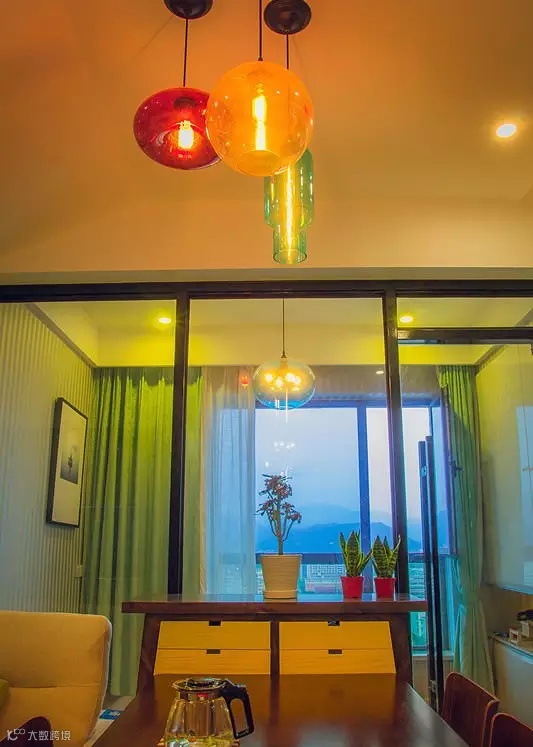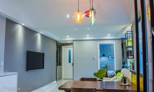 ▲ 沙发一半背靠小房间,一半是休闲区,梁上挂下来的铁艺木架即是收纳又是隔断,台式风经常用