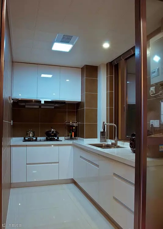 ▲ 厨房深色墙浅色地,白色烤漆橱柜