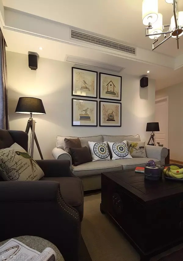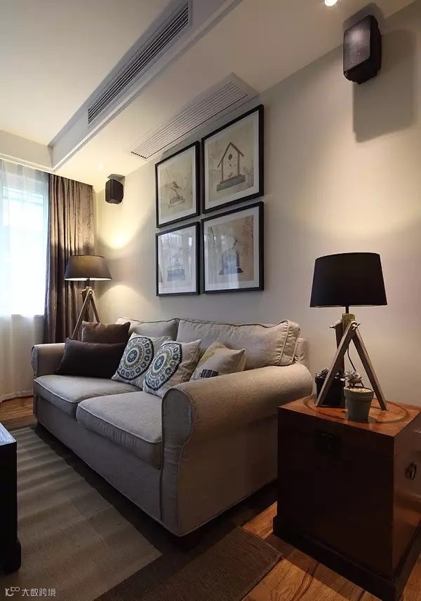▲ 沙发两侧同系列台灯和落地灯『守护』着
