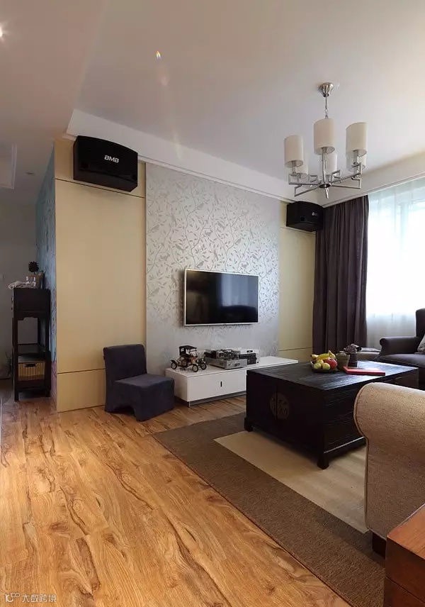 ▲ 电视背景中间是暗纹的花鸟风格壁纸