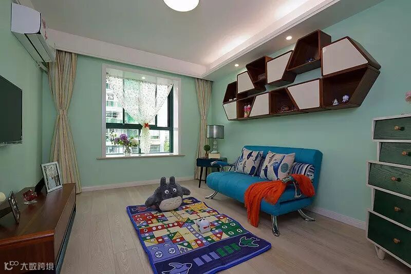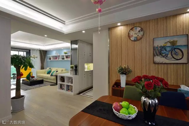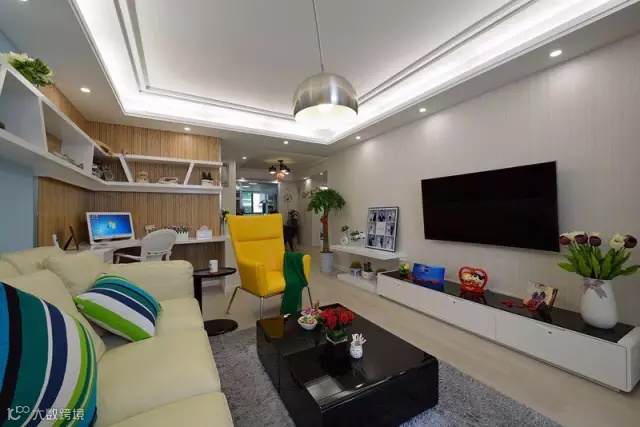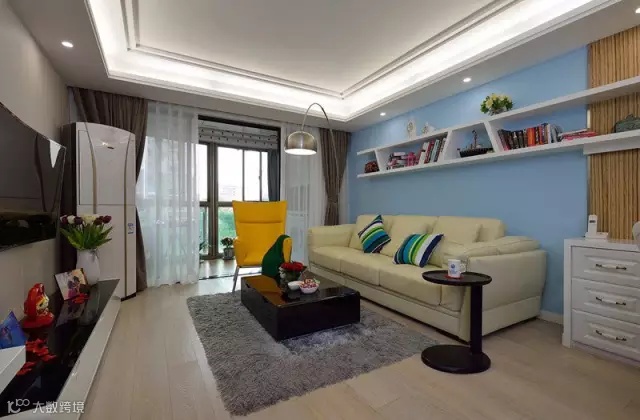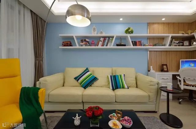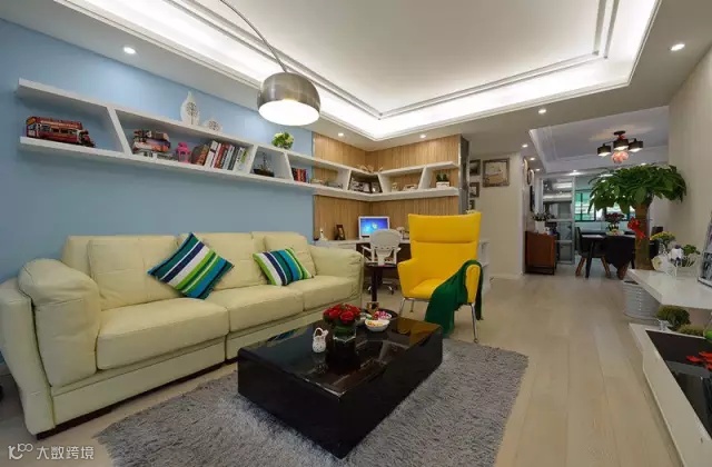 ▲ 清水蓝的沙发背景配上柠檬黄的单人沙发,瞬间提升了整个空间的时尚气息和活泼气氛