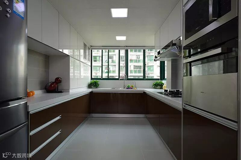 ▲ 厨房上柜采用白色,下柜采用巧克力深色