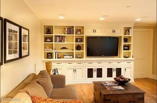 客厅的电视背景墙巧做收纳柜!