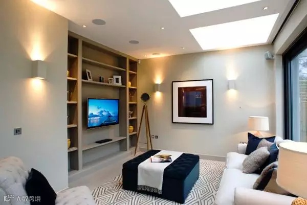 搁板在哪个空间都能安装,电视背景墙用隔板填充,相比起做成大储物柜的价格要便宜,而且不容易产生压抑感,唯一的缺点就是要经常的打扫。在安排隔板时,可以设计一下电视机的位置,以及隔板的样式,搭配一下背景墙就能变换不一样的感觉哦。