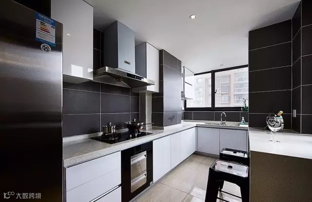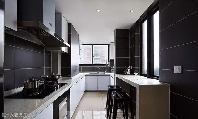 ▲ 黑色墙砖做出来的厨房透着一股高冷气质