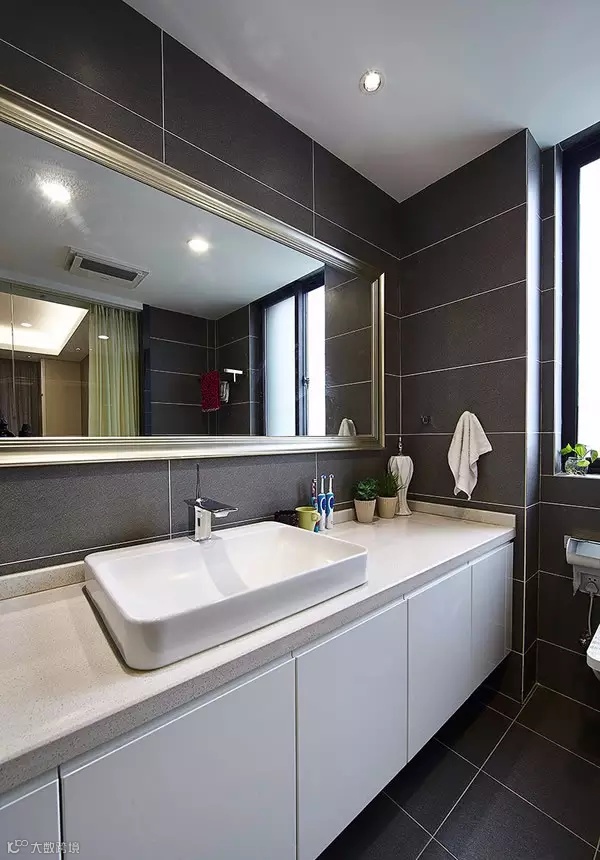 ▲ 洗手间干区同样用马赛克做背景